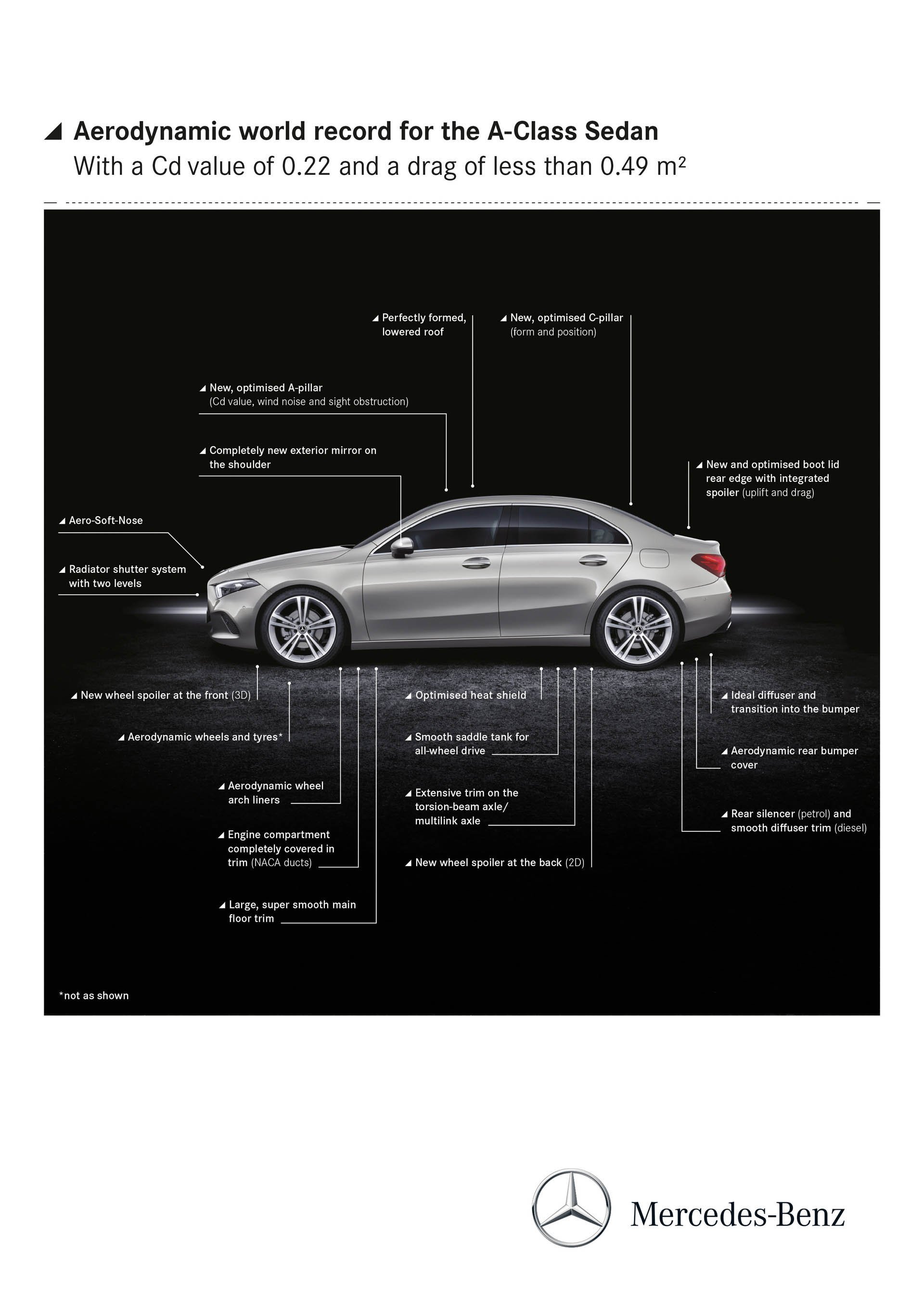 A3 Sedan gibi modelleri direkt olarak hedef alan yeni A Serisi Sedan, 4,549 mm uzunluğa sahip. Sınıfındaki en aerodinamik gövdeye ve hatchback versiyonu ile tanıtılan yeni kabini, MBUX medya ünitesi ve bolca teknolojik ekipmanıyla segmentinin en dikkat çekici modellerinden biri. Kabin ve MBUX medya ünitesi ile ilgili daha detaylı bilgi almak için önceki haberlerimizi ve hatchback versiyonun test videosunu izleyebilirsiniz.