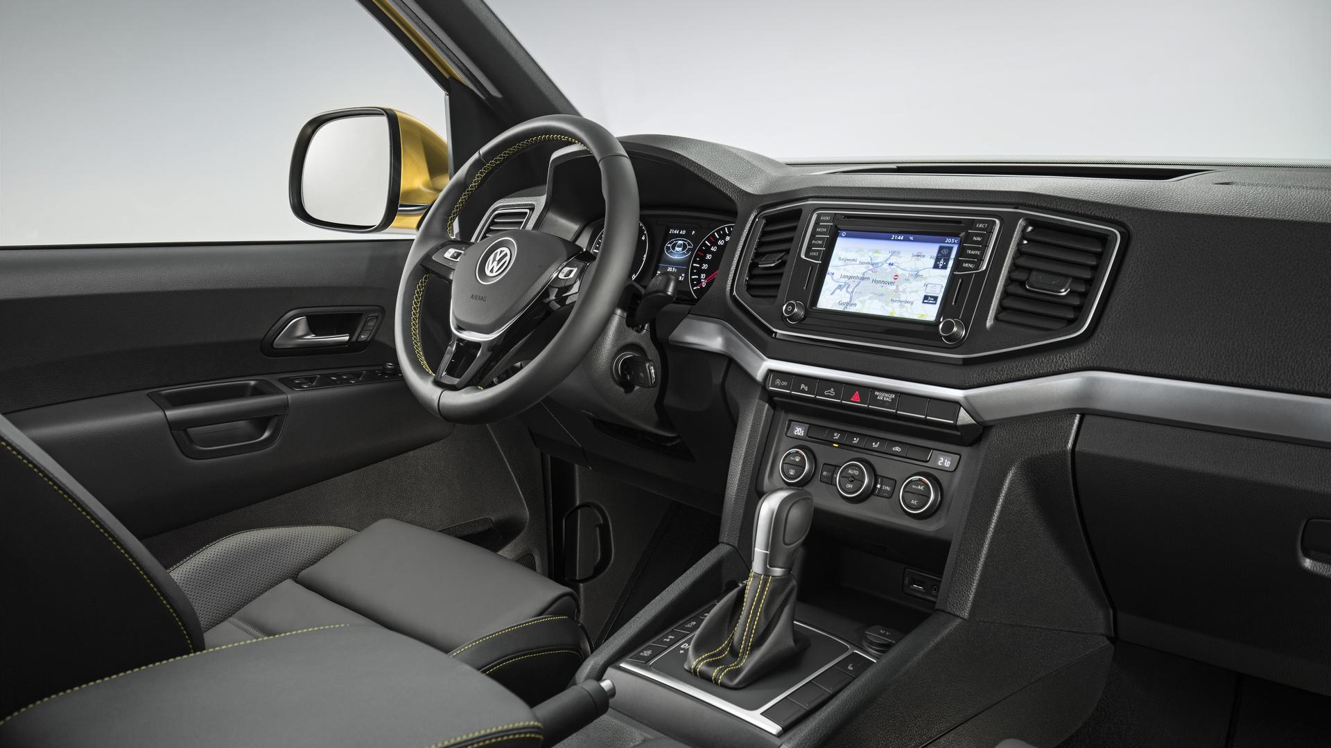 Amarok Aventura Exclusive’nin içinde de lükse dönük değişiklikler yapılmış. Sarı dikişli siyah deri, 14 yöne ayarlanabilir elektrikli koltuklar, geri görüş kamerası, deri direksiyon ve siyah tavan döşemesi gibi detaylar kabindeki lüks hissiyatını arttırıyor.