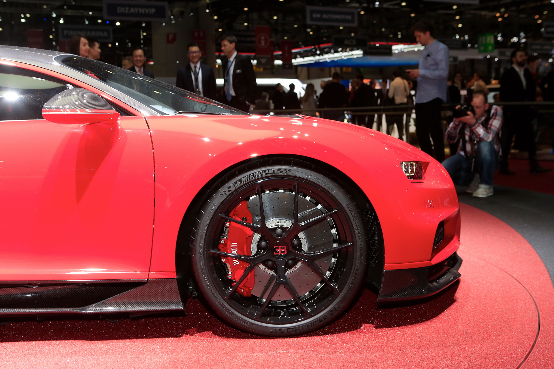 Fotoğraflarda gördüğünüz İtalyan Kırmızısı Chiron Sport yaklaşık 3 milyon euroluk fiyat etikene sahip. Modelin bütün opsiyonlara sahip olduğunu söyleyen Bugatti, Chiron Sport’un bu sene fuarda yer alan en pahalı üretim versiyonu otomobil olduğunu düşündüklerini söylüyor.