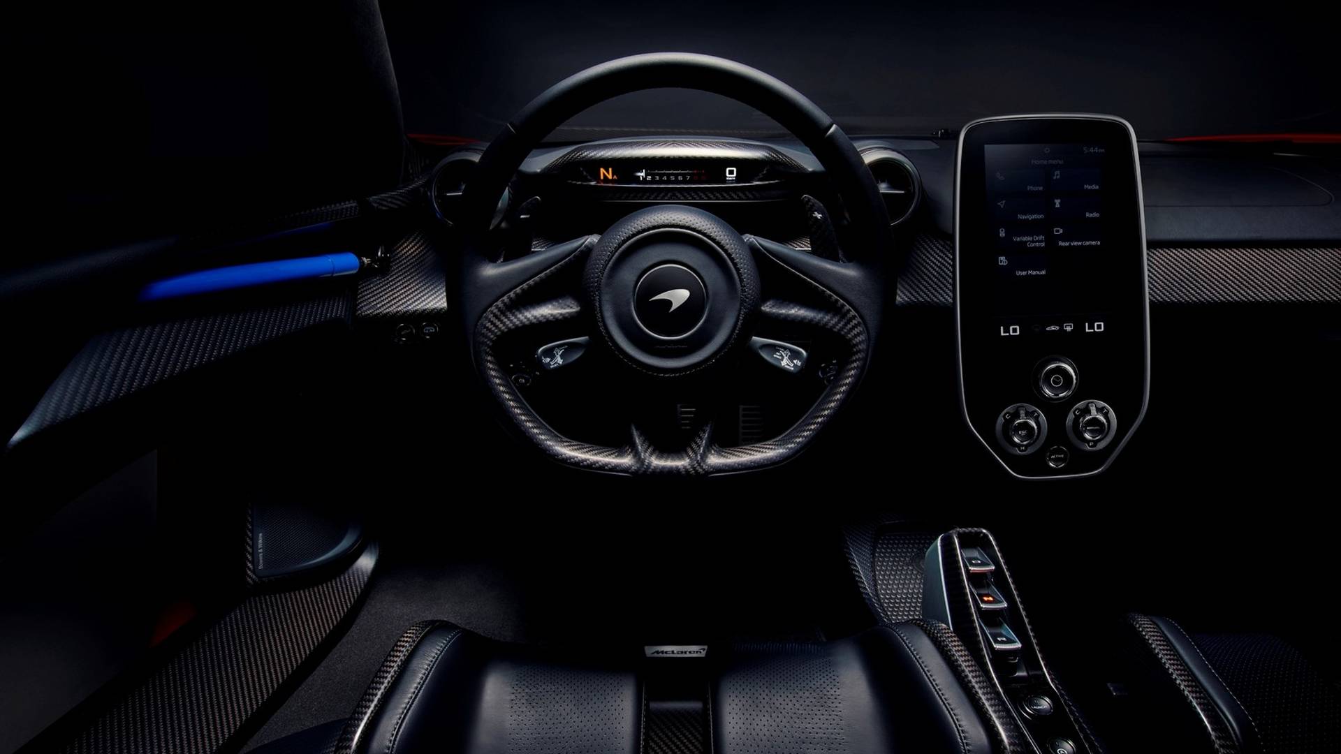 Kapılarda yer alan cam bölümler oldukça sıra dışı ve amacını sorgulatırken, gözünüzü hemen devasa carbon-seramic diskler alıyor. Pirelli P Zero Trofeo R lastiklerle sarılmış jantların arkasında bulunan bu disklerin her birinin tam 7 ayda üretildiği söyleniyor. Carbon-fiber’dan oluşturulmuş kabine geçtiğimizde ise bizi minimalist bir tasarım karşılasa da yine pek çok özellik bizi bekliyor. Pist odaklı olmasına rağmen, geri görüş kamerasını kullanabileceğiniz medya ünitesi yerinde dururken, 720S’ten alınmış katlanabilir elektronik kadranlar karşınızda bulunuyor.